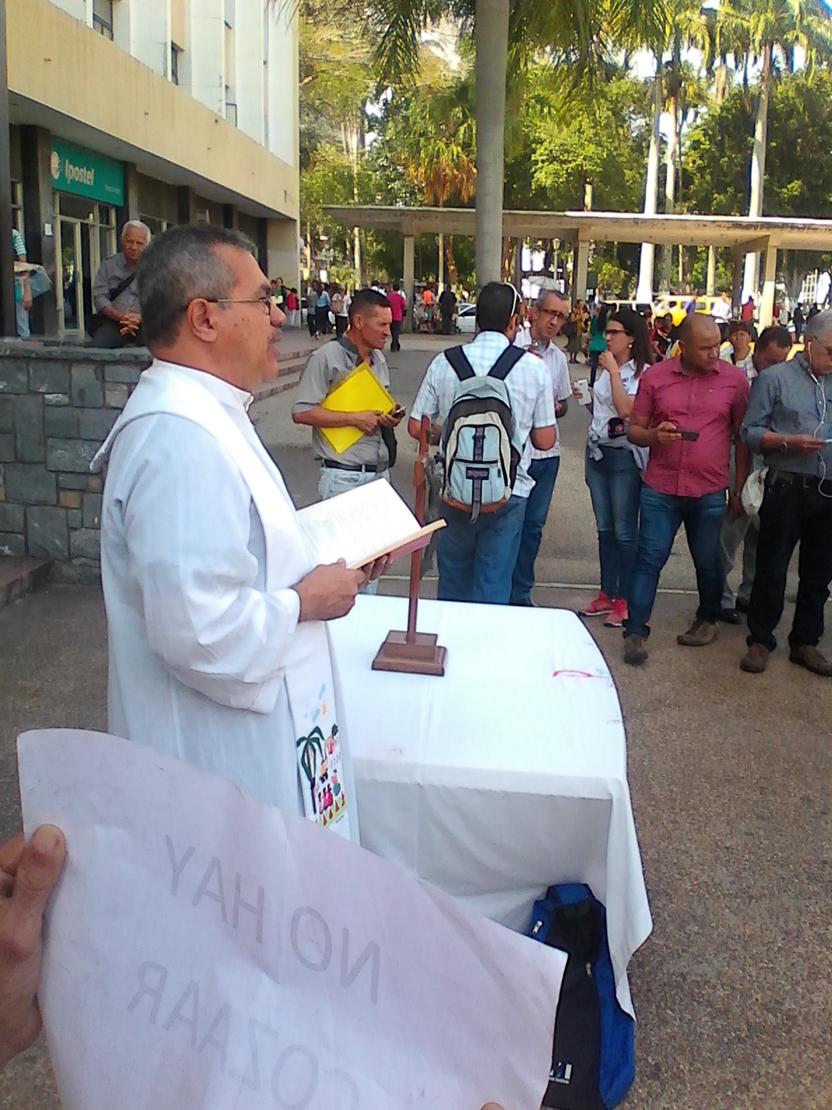 En un acto sencillo donde con la presencia de un sacerdote, se oró por los pacientes que se encuentran en situación de riesgo ante las carencias en materia de salud, exigiendo la apertura de un canal humanitario que permita en un corto plazo paliar la crítica situación que ya no sólo se circunscribe al ámbito de salud y económico, ante la carencia de las medicinas y los costos prohibitivos de las mismas; sino que también ha traído consigo un aspecto político en la acción gubernamental de discriminar en la distribución de medicinas subsidiadas a través del carnet de la patria, exigencia que hacen las autoridades en la materia para registrar a los ciudadanos.